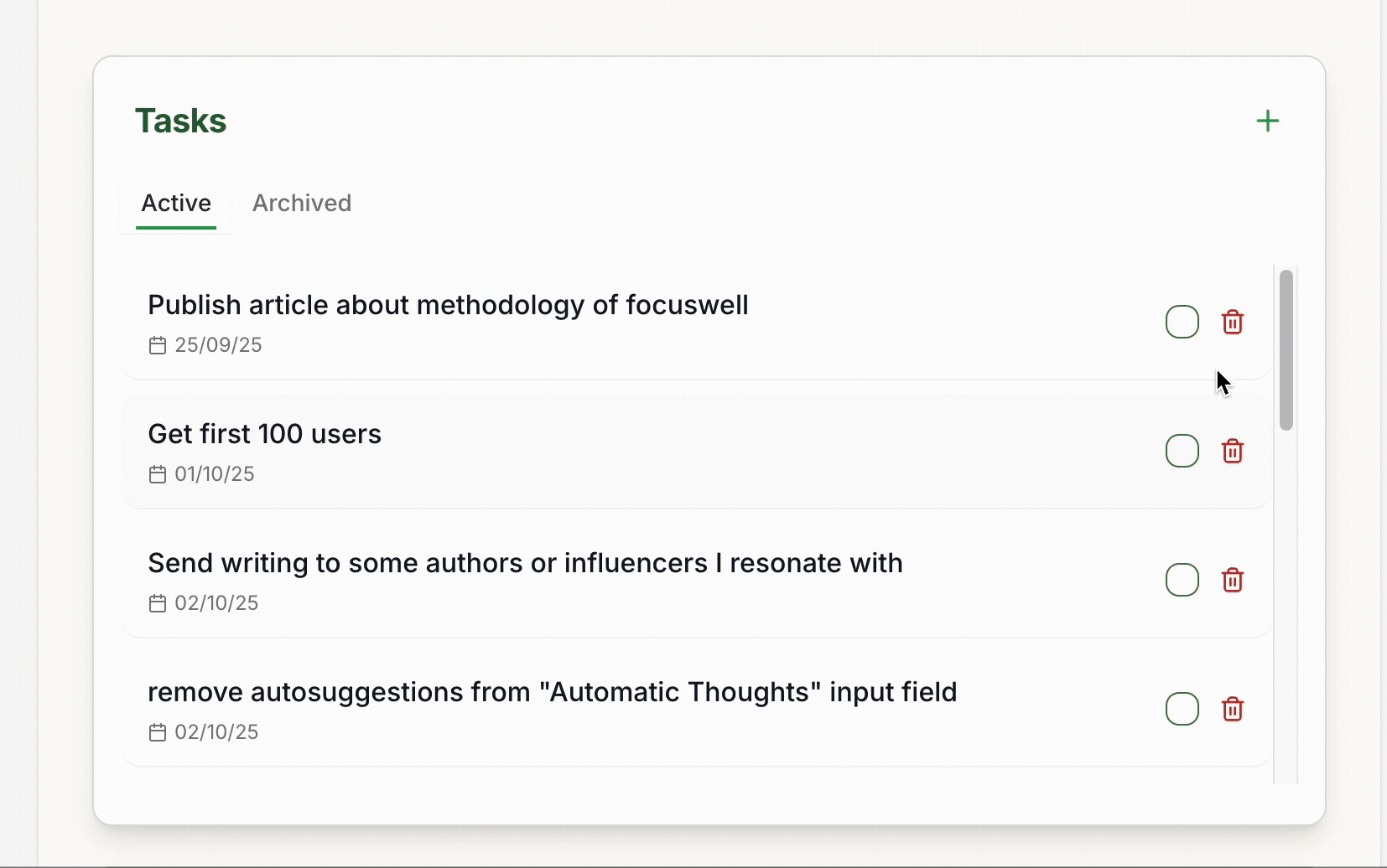 I wrote more in-depth about a mental decluttering formula used in focuswell in another article.